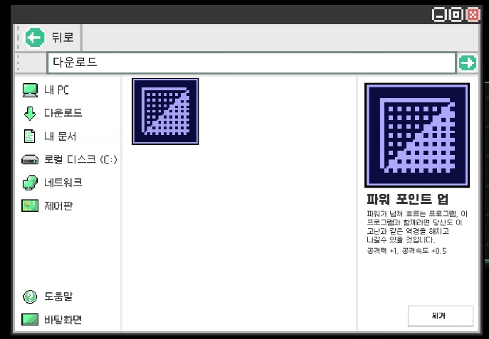- 제거 버튼을 누르면 해당 프로그램이 삭제되고, 변경되었던 능력치들이 원상태로 복구된다.