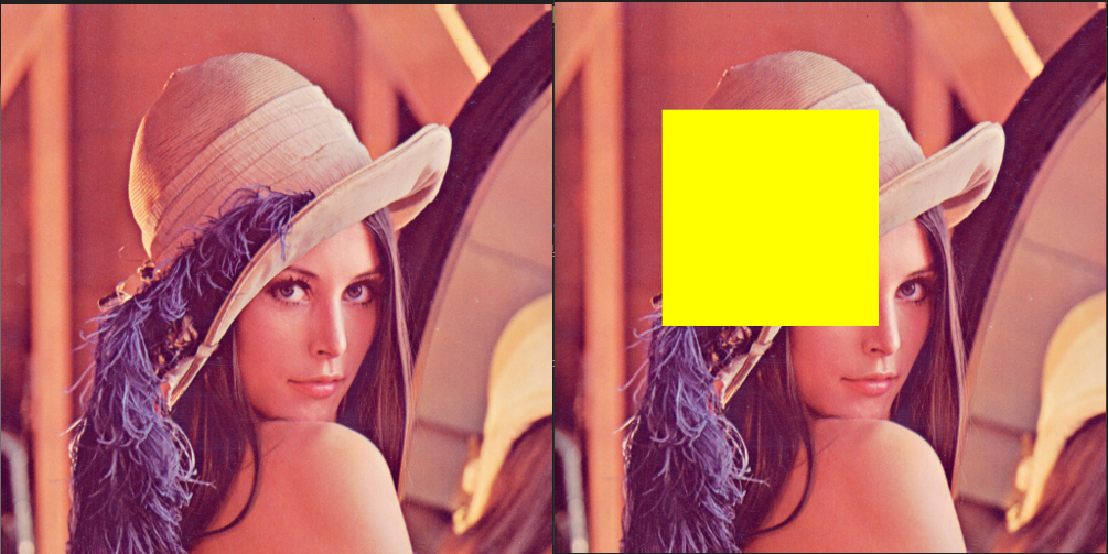 rectangle의 vertex 좌표 (100, 100), (300, 300)의 내부를 yellow로 filling 한다.