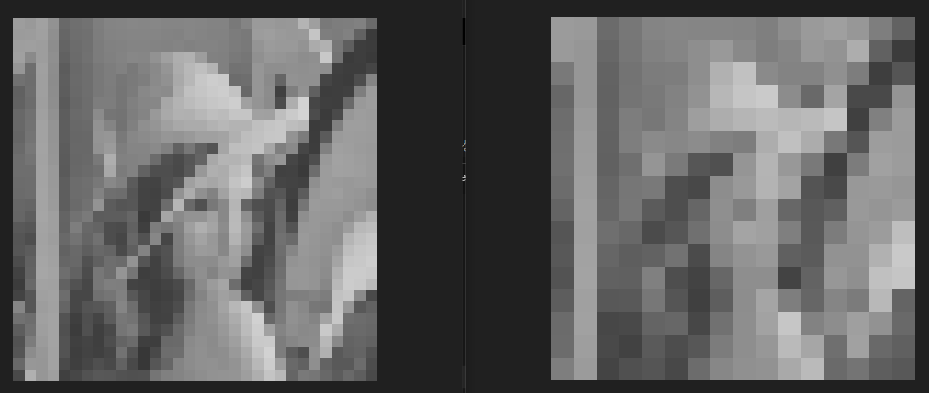 2. (c)는 block size가 32x32 임. (32x32) 개의 밝기값의 평균을 구한 다음에, 해당 픽셀들을 평균으로 대체한 것임