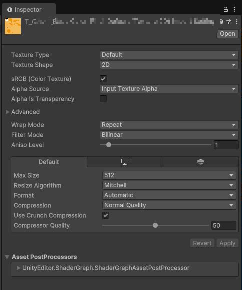 텍스처의 경우 이미지 파일이므로 이미지 압축 과정과 동일하게 진행하면 된다.