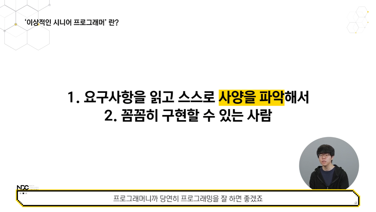 이번 강연은 회사에서 주니어 프로그래머로 일하고 있는 내게 가장 먼저 눈에 들어온 강의였다.